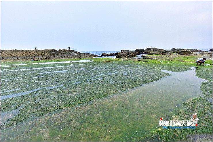 沿著大坪海岸邊走,這裡有很多類似老梅綠石槽的岩石,請儘量靠邊邊走並小心防滑。對了!一路上還有許多海蟑螂、螃蟹和小魚兒相伴,有點小小潮間帶的FU~~