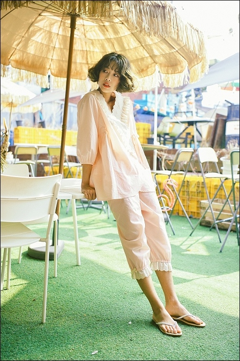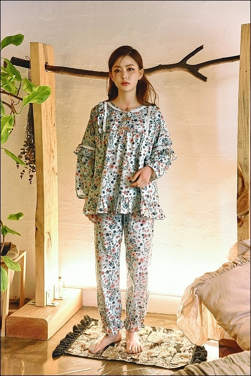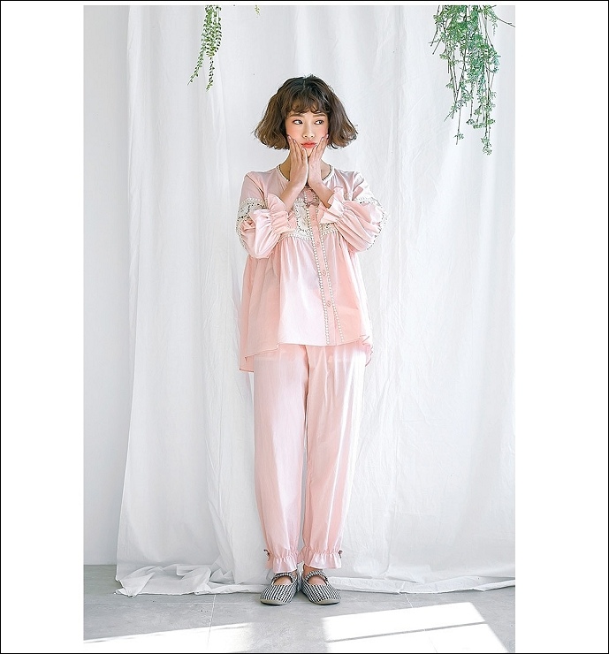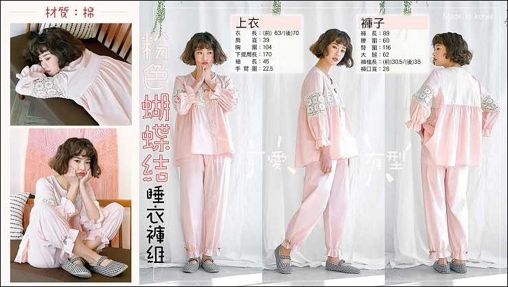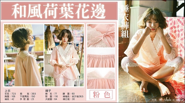 這款更蕾絲,領口跟褲角都有,七分袖七分褲,這套相當日系風,甜美可人,我真心覺得好適合高中少女、大學生或小資女,當然媽媽要穿我也是不反對啦XD