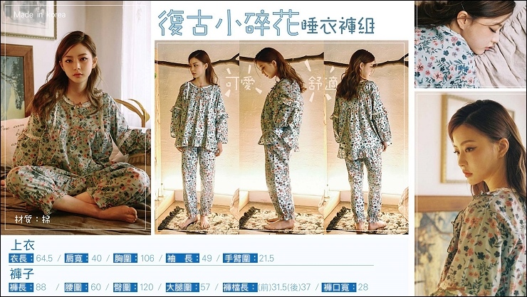 我自己喜歡這套復古小碎花睡衣褲組,連XXL都可以穿,真的尺寸範圍好大啊~~