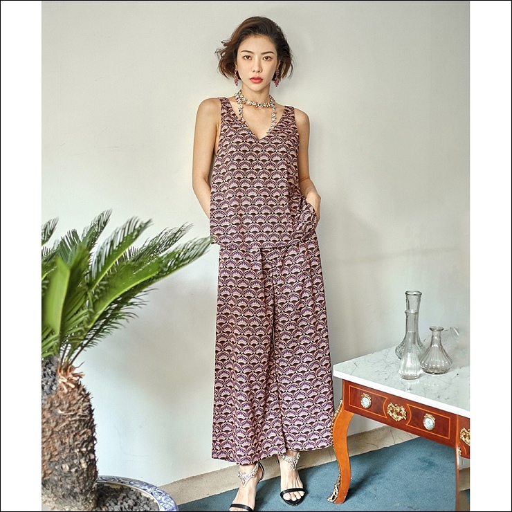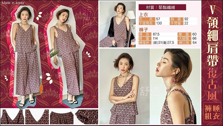這套V領幾何圖案睡衣褲組&熱帶棕櫚樹罩衫是當初吸引我們去那家店的原因!!你覺得這像睡衣嗎?根本外出服好嗎:P(反正今年流行睡衣外穿,我認真去東大門勘查過了)
