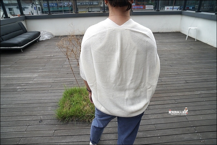 我喜歡他後面脖子的倒三角剪裁,很別緻,如果剛好有刺青露出來就美了...一樣不分身形皆可穿喔,差點忘了提醒,羊毛切忌不能丟機洗,最好送乾洗喔!如果不想花錢就要自己認份點手洗啦XD