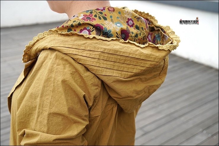 這件芥茉黃也是我的菜,雖然店家還有另外兩色(完全不考慮),因為今年就是流行芥茉黃!!蕾絲花帽還可以拆喔~~