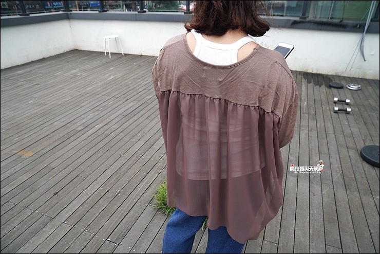 背面拼接雪坊紗,完全不悶熱,穿起來好透氣!裡面配件背心就很好看~~