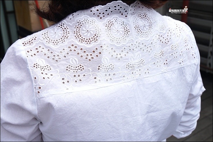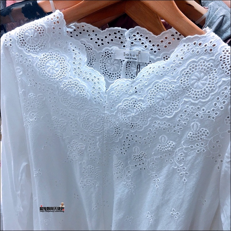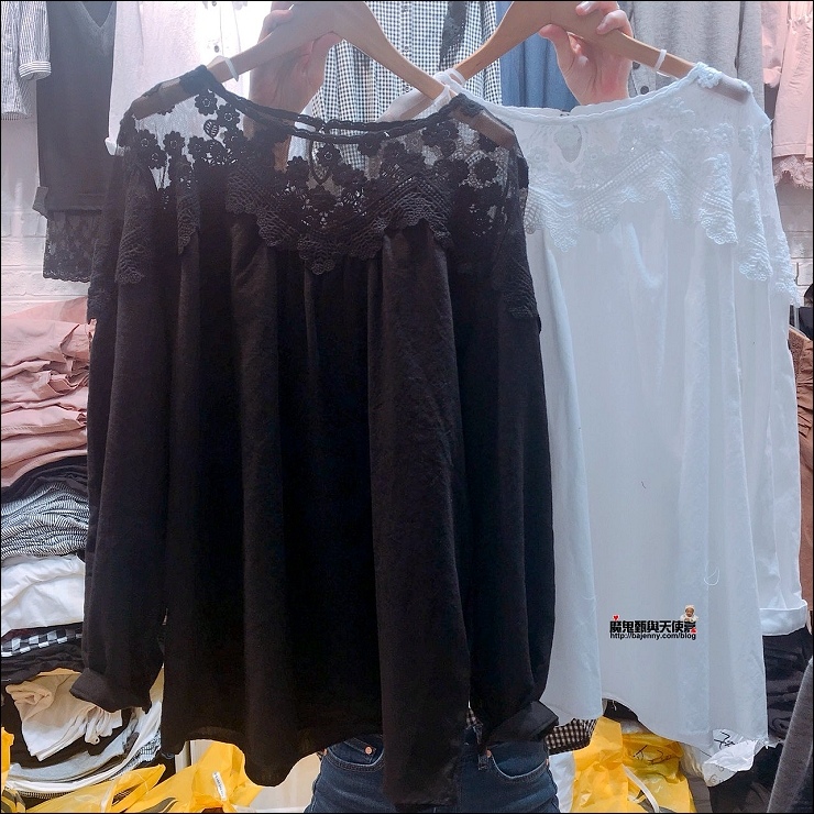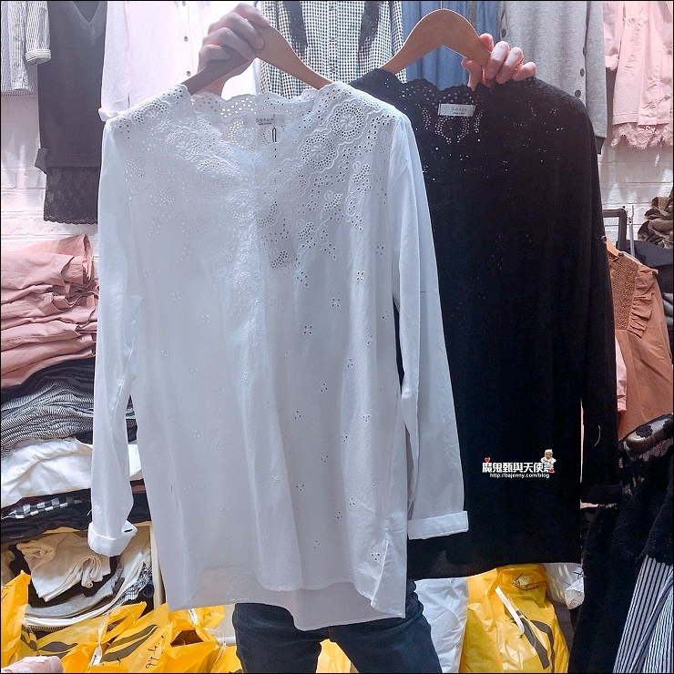 黑白兩色燒花蕾絲襯衫,我喜歡他的領口設計 好優雅女人,但這件下圍有限,只有S~M的人可以穿(泣),大家可以仔細看一下衣服的尺寸。
