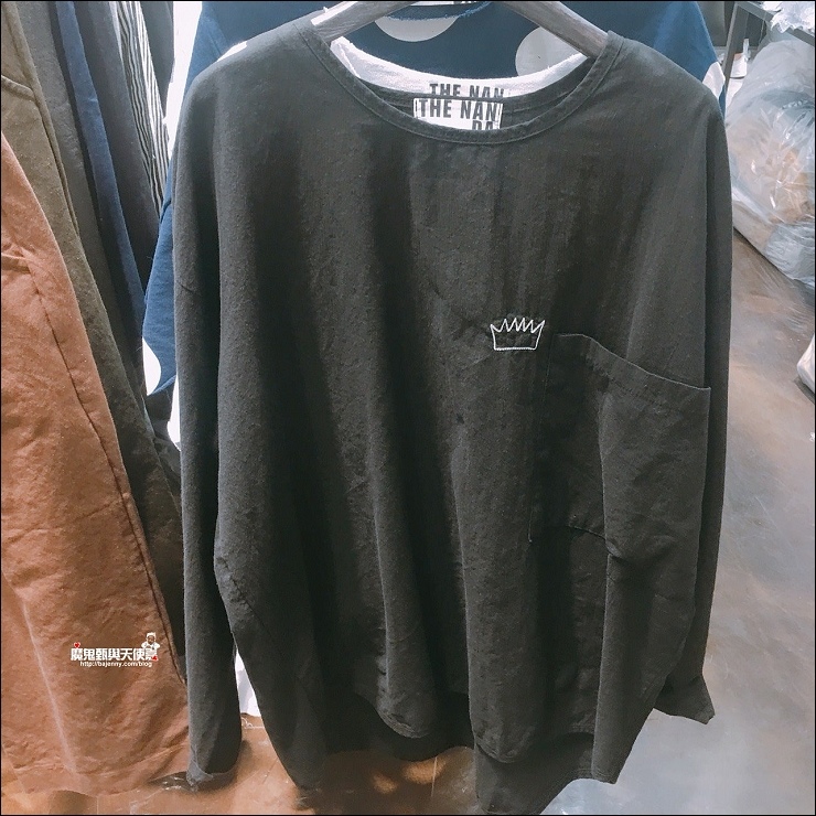 這幾年很流行over size的上衣、風衣及外套,這種版型都很顯瘦喔!共有兩色,黑底白皇冠跟白底黑皇冠,很經典的黑白長T永遠不退流行~~