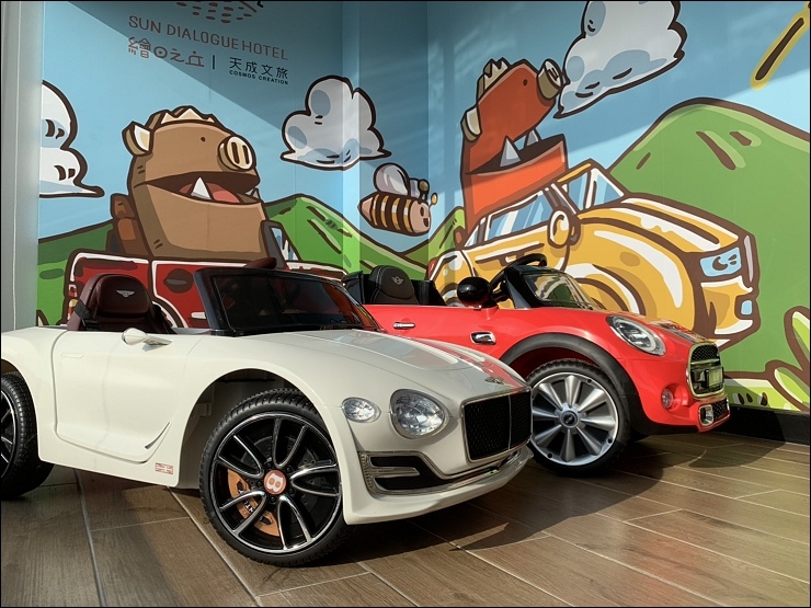 7樓充滿童趣的兒童遊樂園交誼廳,有小朋友最愛的遊樂設施和懷舊零食鋪小零嘴免費嚐,有吃有玩基本上帶小朋友來住應該都會很滿意,今年又多了另外今年還有新的設施,兒童超跑俱樂部給孩童的迷你電動車,另一個是給小小兒童打造迷你碰碰車!