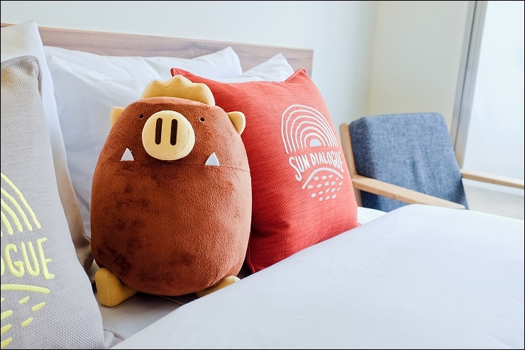 飯店也有提供嘉義火車站和嘉義高鐵站的嘟比車預約付費接駁,方便搭車前來的旅人,飯店的嘟比候車亭很有童趣。