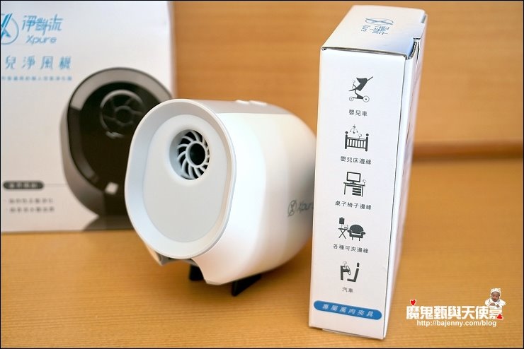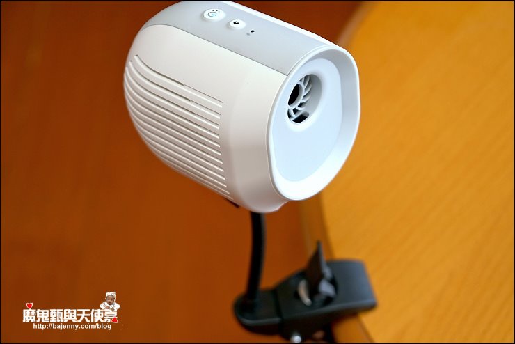 這台當初的設計是給嬰兒用的!唯一適用戶外嬰兒車的空氣清淨機,而且標榜是一台可從小陪你到大的隨身型空氣清淨機!!但其實特殊的傾角底座設計,當不使用夾具時,放在桌上也能剛好對著使用者臉部吹送乾淨微風,不只是小孩,學生或上班族也能使用喔~~