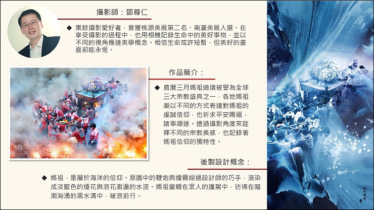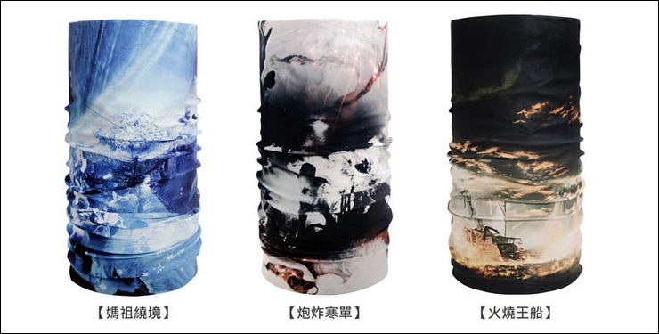上次魔術頭巾很受歡迎(一樣有過濾功能喔),有素色及台灣意象的設計師款,這次推出的則是台灣傳統祭典系列,係以照片為基底去重新調整製作,風格色系定位在男性,本次共三個主題為:【媽祖繞境】、【炮炸寒單】、【火燒王船】。當然,台灣具有代表性的傳統祭典不只有這三個,如平溪天燈、中元搶孤、鹽水蜂炮、豐年祭、划龍舟、飛魚祭…等,都是非常值得製作的主題,但礙於照片版權與製作成本,目前先推出這三款,若評價與買氣不錯再追加款式囉!我本人對於這個年輕團隊將設計定位在台灣主題的概念給予極大的讚賞,這對於行銷台灣真的很有幫助!!也讓更多年輕人認識本土在地文化。