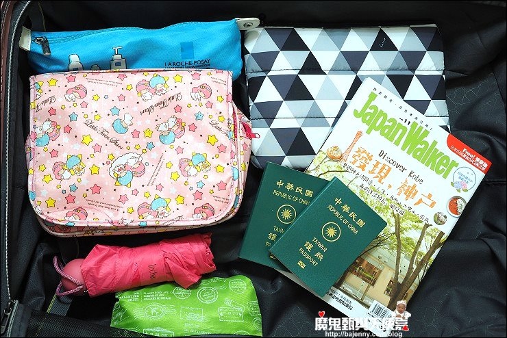 另一邊則是放一些備用品,像是保養、沐浴盥洗用品、雨傘、另一雙備用鞋、旅行袋,還有很重要的是一定要備藥,尤其帶小孩出門一定要備著耳溫槍、退燒藥及塞劑,建議到診所請醫生開一套備用藥品,要是有不舒服症狀可以頂一下,如果是在台灣旅行,就要帶著健保卡,臨時有什麼狀況可以直接去掛號看醫生。