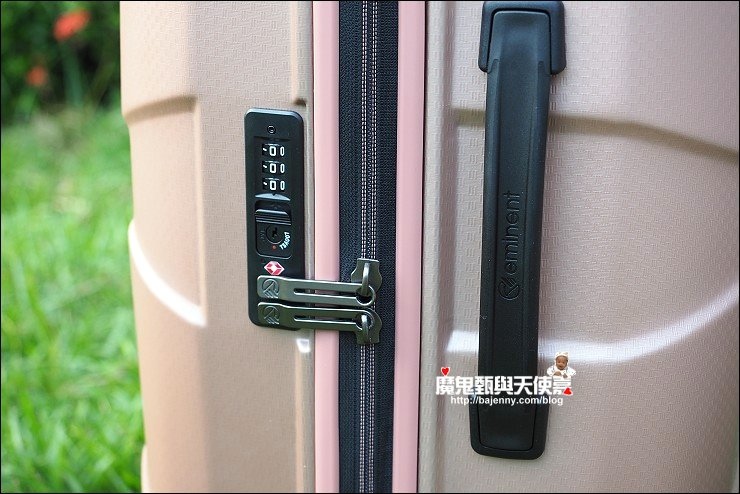 行李箱為國際TSA海關密碼鎖,安全又可靠,走訪世界86國都通用,建議密碼要設好記或常用的,不然忘了就麻煩了...它側邊的提把手感也很好,千萬不要買到側邊沒提把的,那會非常不方便,不要小看這看似很少用到的側邊手把,好用的手把在我們要把行李箱搬起來的時候,才不會太吃力;另外,這款行李箱使用反車式防水拉鍊,出門旅行更安心。