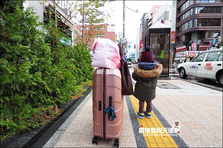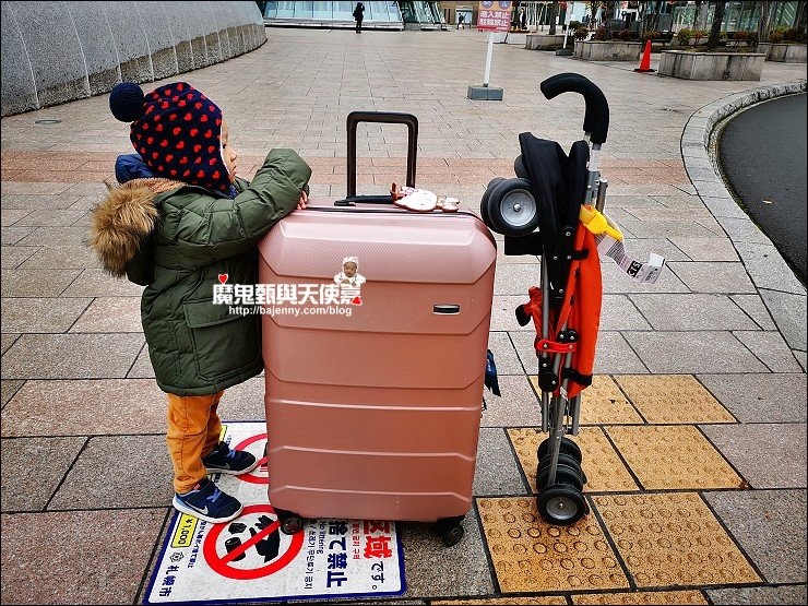 我家小阿弟很幸福,這麼小已經出國很多次了,二歲以前因為不佔位,所以搭飛機不用花機票錢,我很認真帶他出去玩,不過我都會找旅伴同行互相有個照應,這次親子遊是真正的一打一,我一個人要帶著阿弟,第一次到北海道我也完全不熟,其實心裡有點挫咧等,還好千歲機場直通JR,坐JR或巴士進札幌市區方便又容易,旅行中東西一天比一天多,誰叫我那麼會買@@,行李箱耐裝好推很重要,還要再帶上一個旅行袋,才不會大包小包手忙腳亂累死人,這趟旅行很多路人對我投以佩服的眼神,一個人揹著推車,一手牽著阿弟,一手推著行李,下雨時還要撐傘@@,好在阿弟表現很好,會主動幫忙拿東西推行李,媽媽我出頭天了!