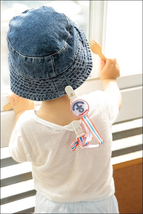 這次的扣夾造型很可愛,搭配這種多用扣夾可以化身成簡易圍兜,平時也可以當帽夾跟綁固齒器喔!