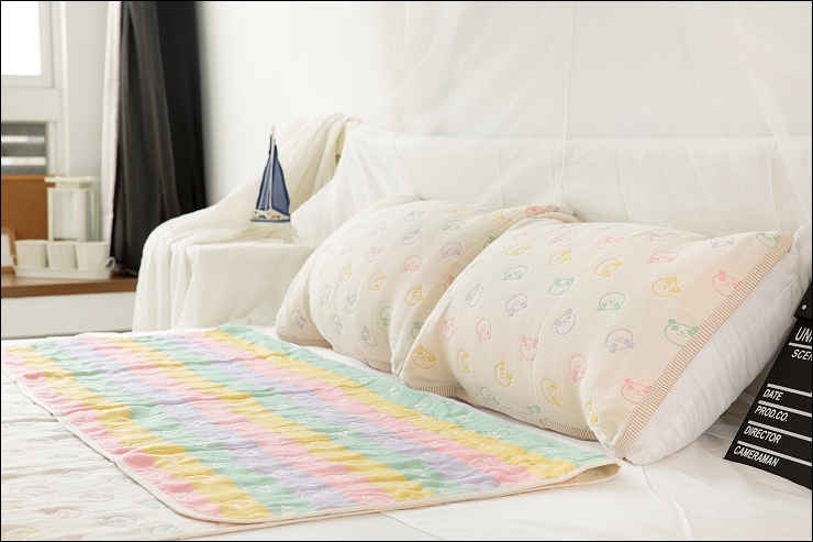 希望大家多重視寢具的換洗清潔呀~現在有方便易拆的枕套換洗上超方便!不過也提醒大家一下喔,這個面積比起被子比較小,千萬不要去烘乾,洗衣機洗衣袋清洗都沒問題的,其實六重紗是紗布材質乾很快啦,然後有鬆緊帶的關係也要多注意小朋友的使用安全喔!!