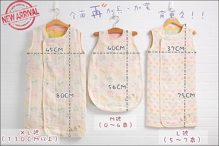 背心式好穿脫,剛起床就算去外面看風景也不用怕,現在出門旅遊真的都要隨身帶一件才安心。L號(37X75cm)的背心130CM以上的大童適用(28公斤內的中瘦型都ok),妹妹現在130CM穿起來過膝,由於版身太寬會不保暖,我認為只要是瘦瘦的大小孩140CM是OK的,豐潤一點的(30~40多公斤)要選最新版加寬XL號(45X80cm)。