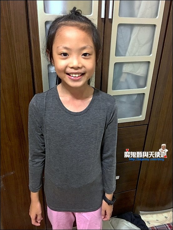 妹妹身高134公分,我要了140公分很正常吧!衣服要買大不可買小啊,結果大錯特錯!!廠商看到妹妹穿的照片立馬糾正我太大件了!發熱衣要穿合身才會暖,而且正確袖長是九分長才對!妹妹穿成全長又這樣寬鬆是不行的XD