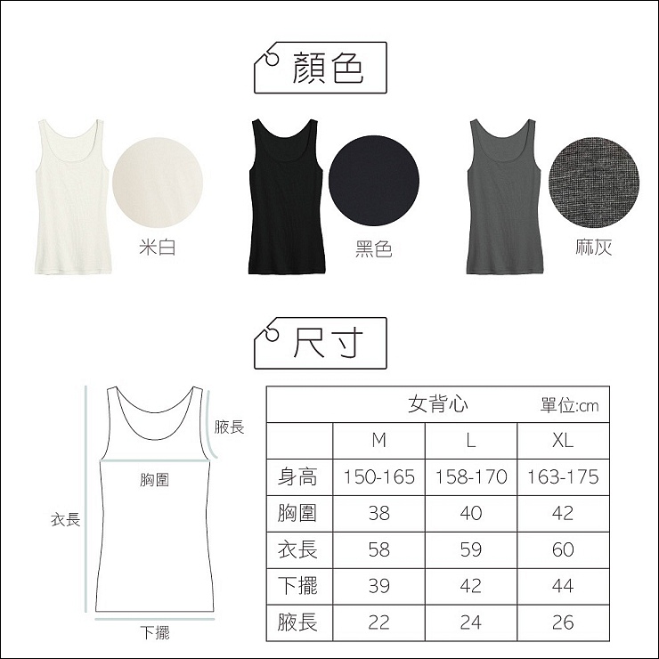 共有三色,如果是背心款的話,我覺得白色很好搭欸,因為很多內搭需要搭白的比較顯色!!當然黑灰兩色顯瘦,是無條件要+1的XD
