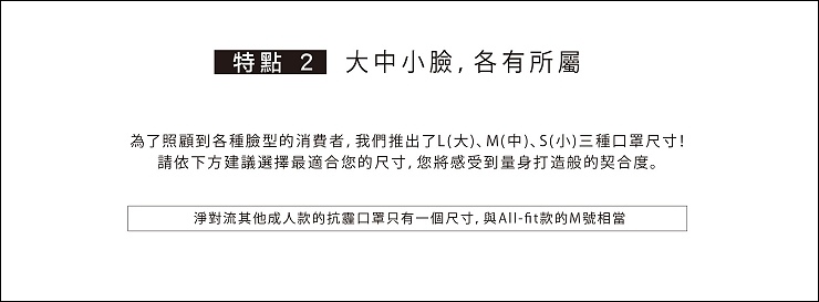 M號其實就是對照一般款的口罩大小,差不多涵蓋80%的人,大臉跟小臉就可以挑L或S號,我自己屬小臉,所以S號可以(這個尺寸大童也可以)、M號剛好、L號非常時期需要!!