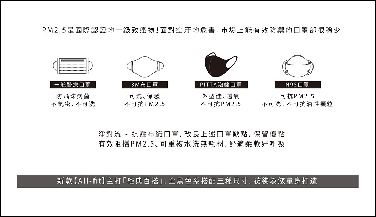有高雄的團友提醒我可以考慮加述可濾PM2.5的功能,最近高雄空氣超糟,戴這種口罩真的會比較心安。確實多加描述效果一定好,我推薦好東西,但無法掛保証(只能點到為止XD),較具功能性的部份要靠大家自己做功課評估值不值得,有興趣的朋友可以去官網好好研究,他們都有第三方公正的檢測報告