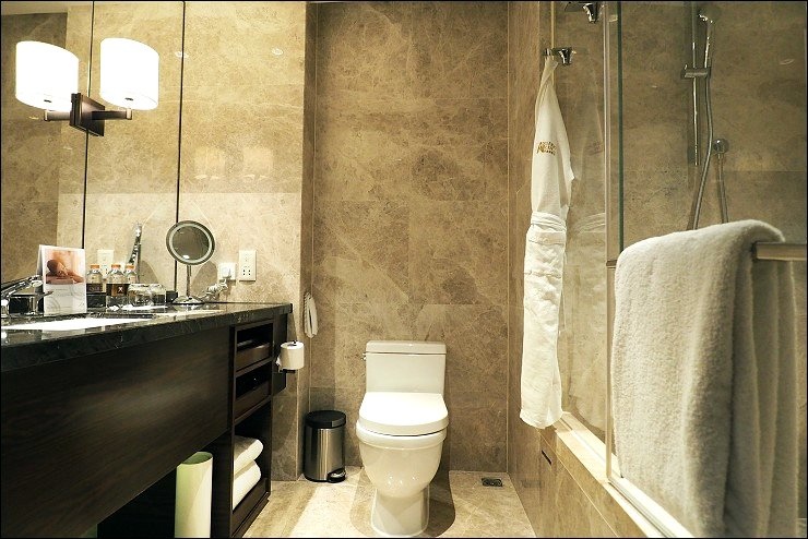 浴室也很大,除了房間有準備4瓶水,連浴室也貼心的放了二瓶水,水份隨時補給!一間房間、6瓶水及8字摩天輪,大家金豬年168一路發!!!