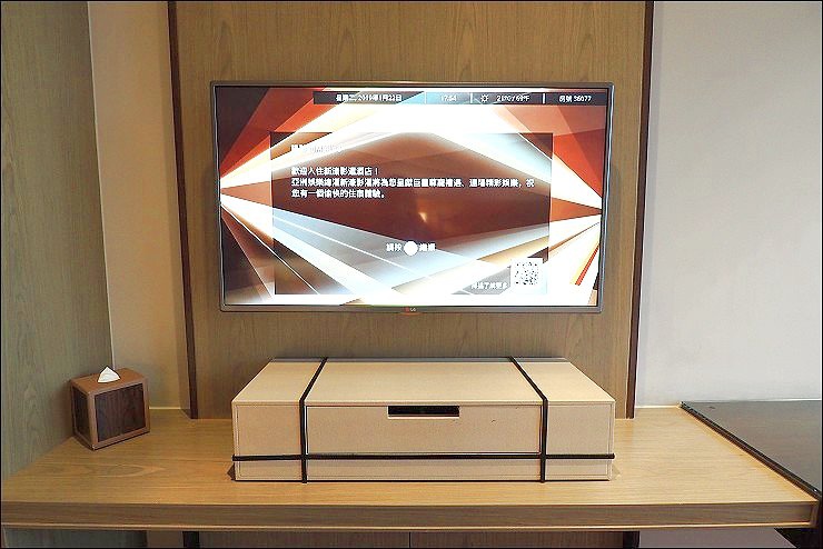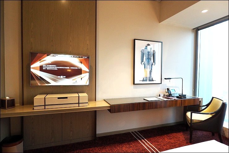 書桌前有插頭讓我充筆電、相機、手機,42吋的電視在房裡感覺竟然不是很大,電視下放是手飾盒。