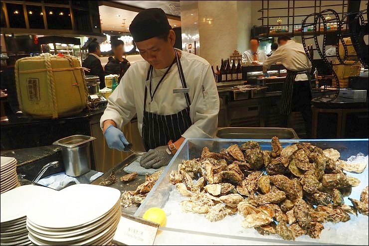 「星滙餐廳」晚餐也是自助式吃到飽,海鮮很厲害,現剝生蠔、雪蟹、大蝦、烤鴨、海南雞、叉燒任你吃,甜點種類也很多,我光吃海鮮就吃好幾盤。