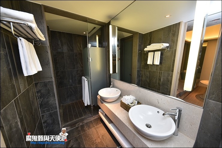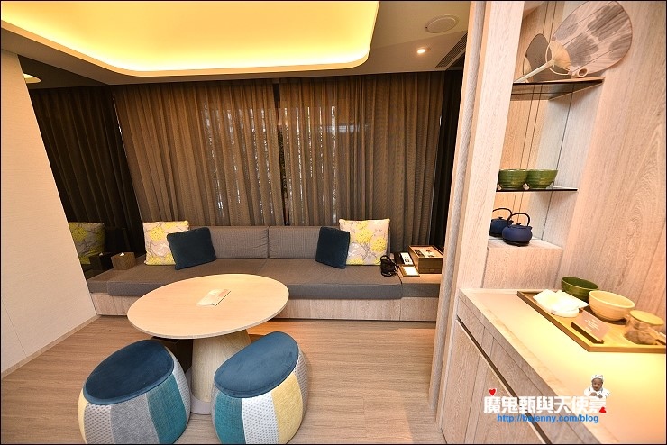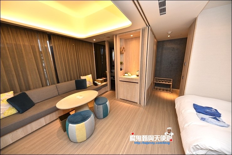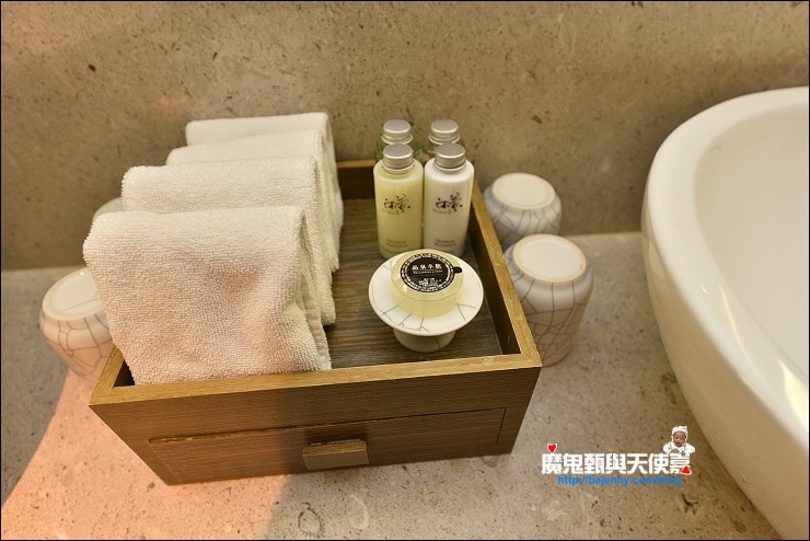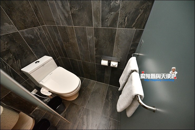 我們入住的是有二中床、小客廳、獨立淋浴間和半露天湯池的泉思"家庭"套房,隔局有點像礁溪老爺的房間,這種等級的飯店免治馬桶是一定要的,沐浴備品蠻好洗的。
