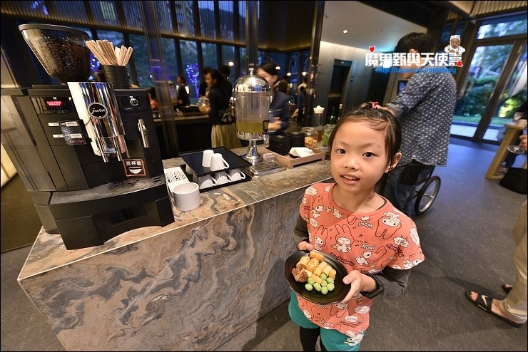 入住時可以在大廳旁邊的沙發區喝著咖啡點心辦理CHECK IN,我們到飯店時下午五點多,剛好碰到飯店的Happy Hour紅白酒放題,野馬妹覺得HAPPY HOUR點心很好吃,紅白酒時間放題結束時會換成小朋會愛的餅乾,讓人感覺貼心又細心。