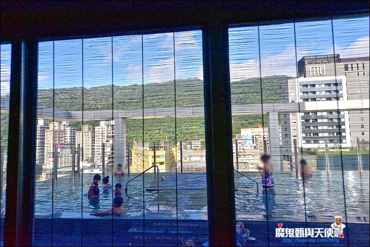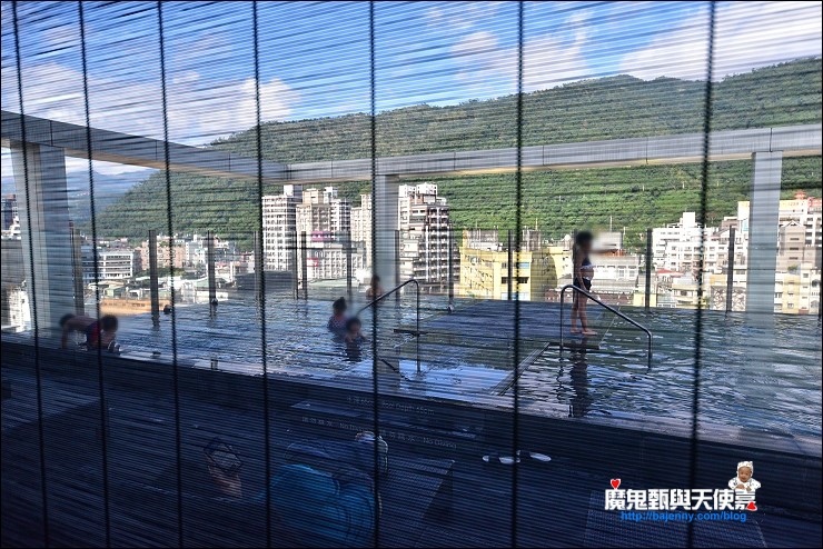 如果不想游泳的話,無邊際泳池的另一頭還有山景溫泉池可以泡,電梯一出來就看得到。