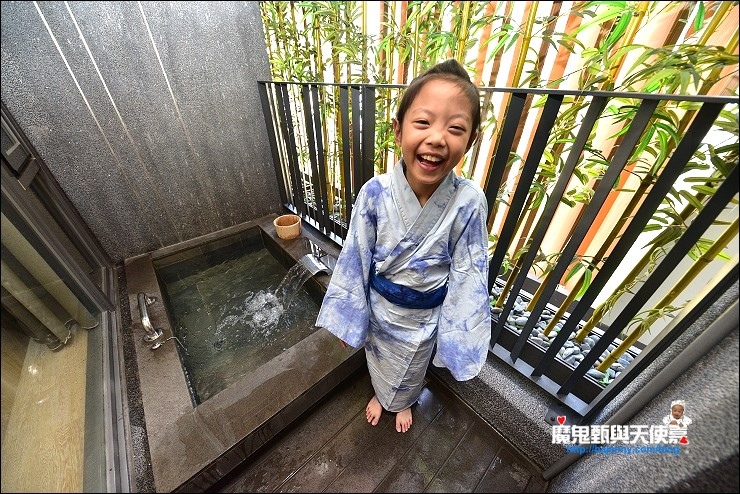 露天湯池在小客廳的外頭,應該算是在陽台的位置,之前入住北投加賀屋也有這種設計,在這裡泡湯通風不悶,不過湯池感覺小了一點。
