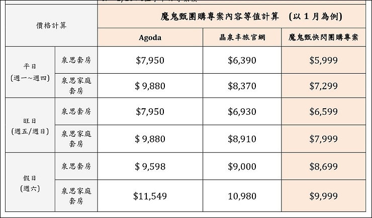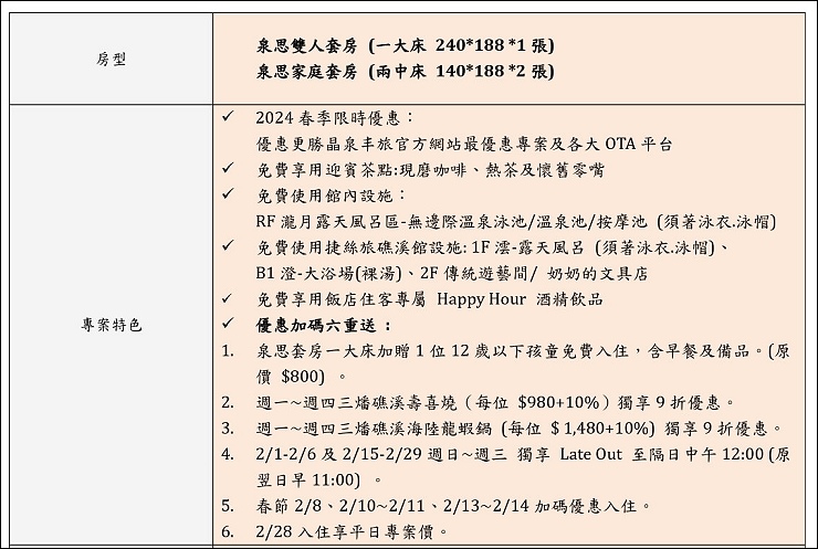 優惠更勝晶泉丰旅官方網站最優惠專案及各大OTA平台