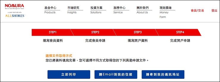 野村投信機器人理財首創機器人+真人理專雙重服務,提供全方位的理財服務,機器人投資有黃金比例資產配置規劃,加上全天候投資監控及自動執行再平行,也能有理專提供市場資訊、理財問題諮詢及產品服務解說,我願意每月小額投資交給有溫度的野信投資機器人理財。線上開戶申請超方便,可自行列印或郵寄開戶文件,成功開始就能進行網路申請交易,我已經開始累積我的財富,你還在等什麼?