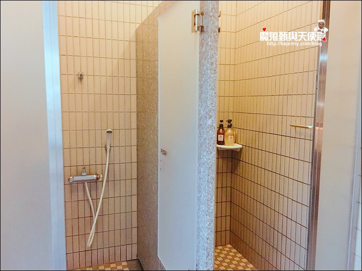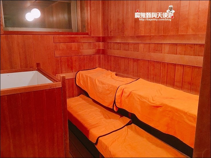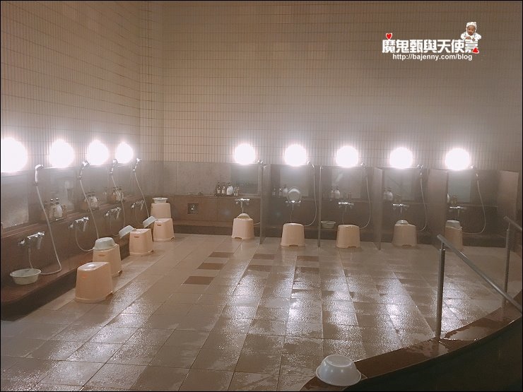 大浴場附兩間獨立淋浴間跟烤箱,一定要先洗乾淨身體才能下去浸泡喔!這是最基本的溫泉禮儀,毛巾也不能帶進浴池裡。