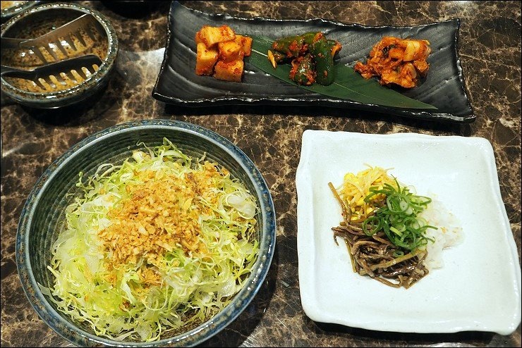 套餐前菜附:泡菜拼盤、韓式涼拌小菜拼盤及小山高高麗菜沙拉,最愛小山高高麗菜沙拉,清爽解膩。