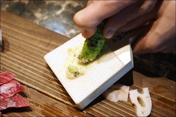 整根芥末現磨現沾最美味,現磨的芥末反而不嗆辣,香氣自然好入口。