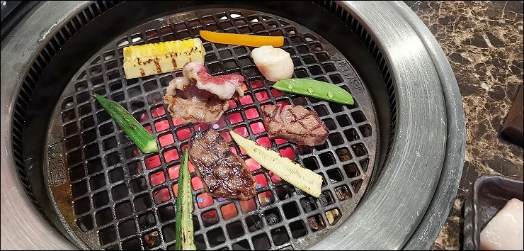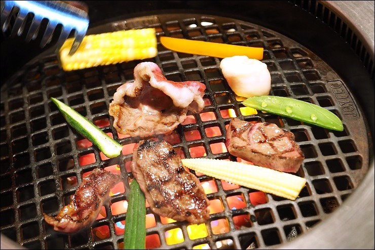 牛內、外橫隔膜吃起來都好嫩,牛心也很好吃,友人超愛,我們幾乎是搶著吃,好在份量不少,一人可以分到三~四片,不會吃到吵架。穿插烤蔬菜秋葵、玉米筍、玉米等蔬菜,吃起來不會油膩,我們筷子都沒停過,吃的好開心。