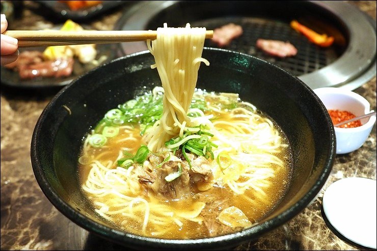 烤肉大餐完食之後,這碗牛尾拉麵更是讓我們飽到頂的一道美味料理。吃的到牛碎肉,麵偏軟,湯頭不會很牛味,喝起來很順口,大食量的男生來吃肯定飽,我覺得三個女生點二人份也夠吃。