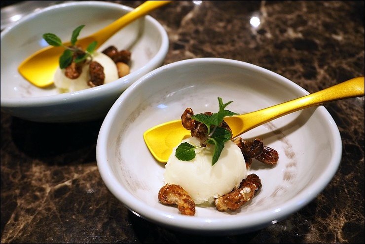 飯後冰淇淋,原本我已經飽到吃不下了,但這碗實在讓人一口接一口,焦糖堅果是店家自製,焦糖與堅果的香氣搭配冰淇淋實在是太美味啦,二三下就被我們清盤。![]()