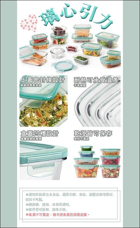 將將將將,我的全方位收納來了!!各種尺寸及形狀的密封保鮮盒真的是主婦們最好的幫手!主體材質有玻璃、AS樹酯及Tritan,上蓋也有分不鏽鋼、ABS樹酯及聚丙烯及矽膠,真的是傻傻分不清啊我...