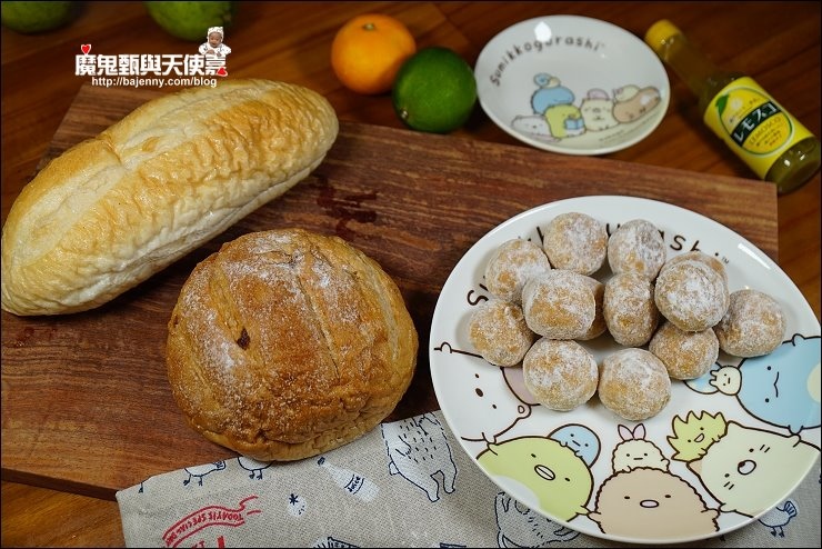 【照片:左→法國麵包/桂圓核桃/杏仁雪球】