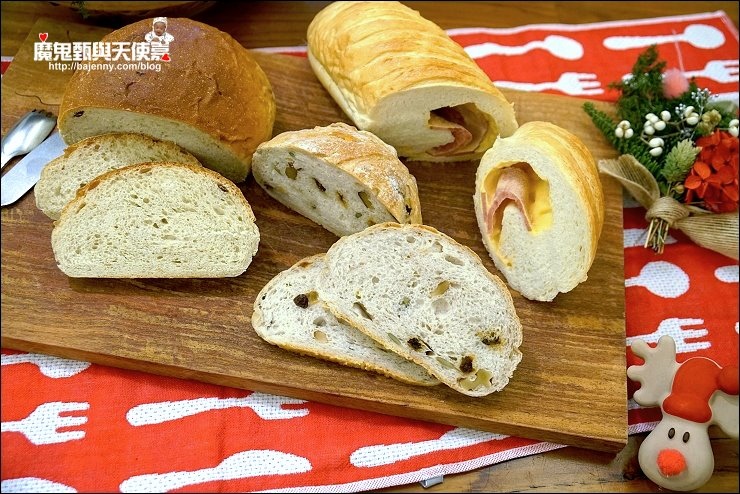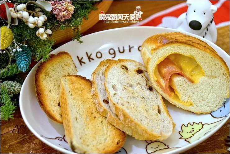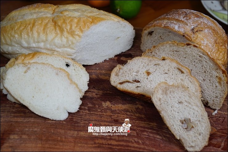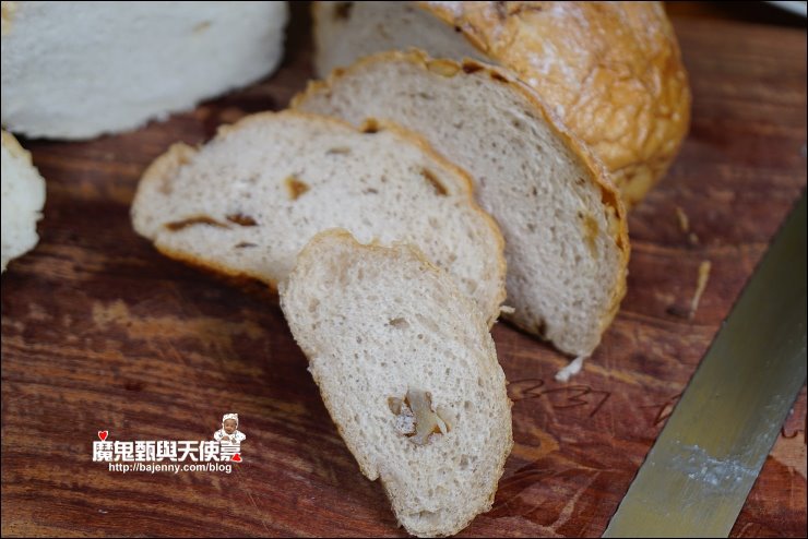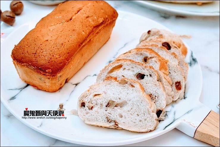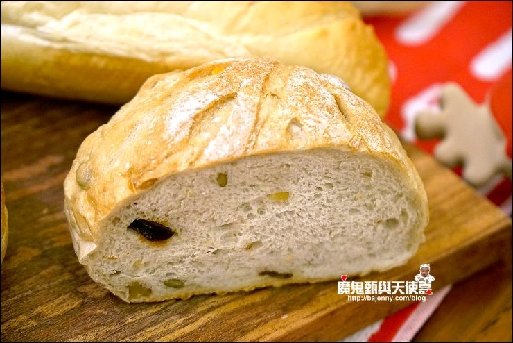 【照片:左法國麵包→桂圓核桃】