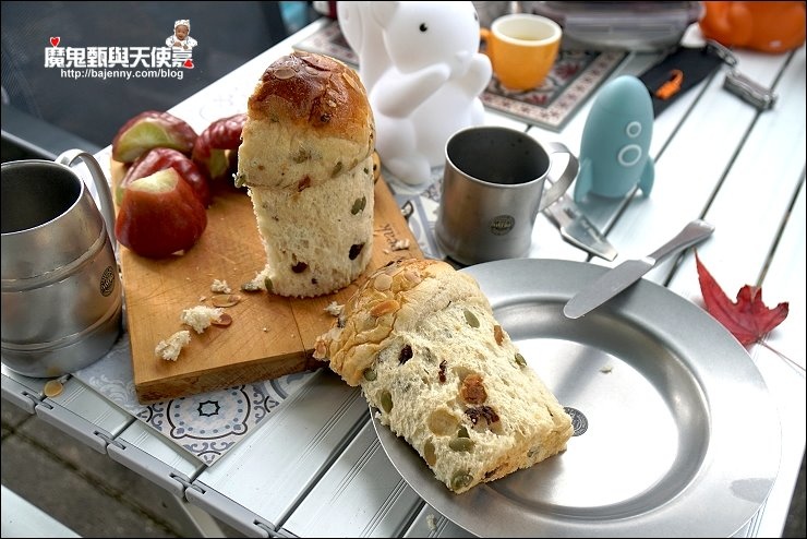 我們上次去露營就是有人直接啃麵包配咖啡,搞工一點就再弄個熱壓吐司,而且這麵包不是複雜加工的口味,只要前一晚把麵包從冷凍庫拿出來室溫退冰,隔天早上(麵包就是正常溫度不會冰),全家分食剛剛好。
