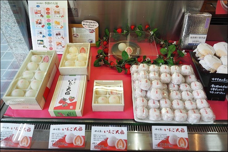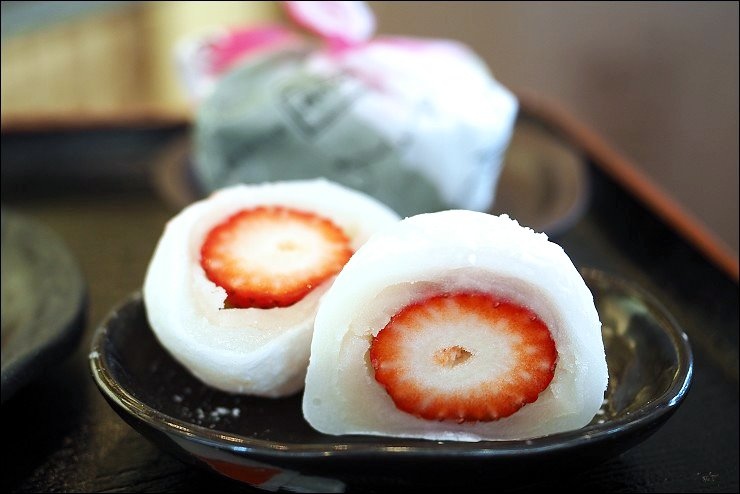 冰櫃的大福也是必吃的甜點之一啦!如水庵依季節推出當季限定的水果大福,當季水果最好吃,依不同月份分別推出草莓、水蜜桃、蕃茄、葡萄等等不同口味的大福,我這次是二月份來,是我最愛的草莓大福,一定要吃!