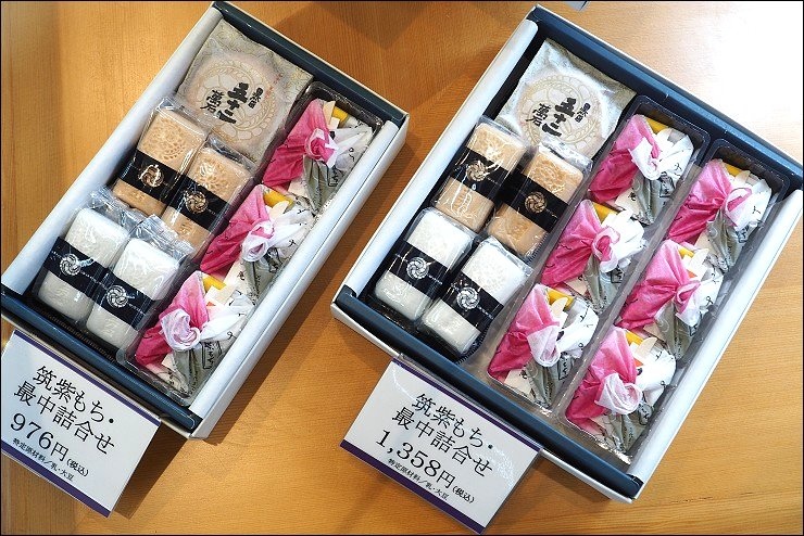 左到右分別為招牌筑紫もち (麻糬)、草莓大福跟あず美(紅豆羊羮),草莓大福需冷藏,而筑紫麻糬跟紅豆羊羮都可以常溫保存。あず美(紅豆羊羮)選用北海道十勝紅豆,以炊煮白飯的方式煮紅豆,讓其香氣充分保存,這款用料很實在,口味略甜,喜歡吃紅豆跟羊羮的朋友可以試試。