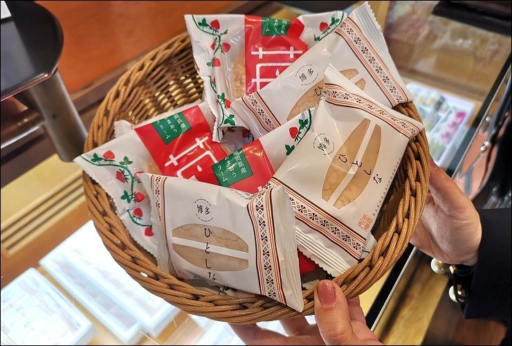 這裡有些小包裝都還滿精美的,季節限定的草莓大福設計草莓紙盒提袋好可愛,我愛吃的博多「ひとしな」也有禮盒提袋版,這種買回去送親友也很適合,份量不用買太大盒,可以多買幾份多送幾個親友,大家都吃的到我也不用花太多錢,很划算啊,結果我又掏錢買單了,千萬不要以為我買太多,回家親友不夠吃啊...下回來福岡肯定要多買幾盒才行!![]()