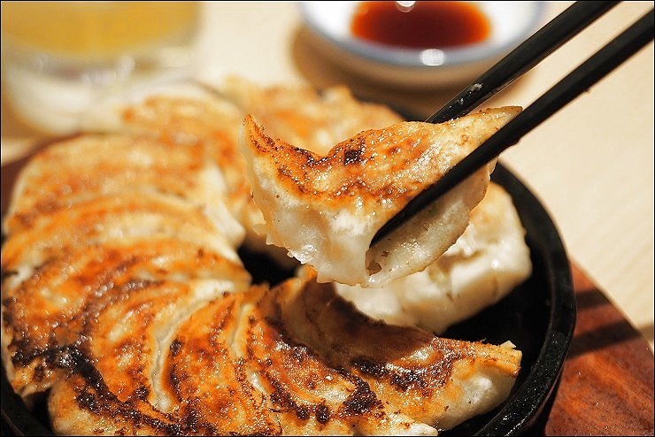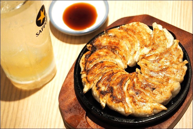 店家招牌博多鐵鍋煎餃(8個490日圓/12個730日圓),現點現做約等10分鐘。博多鐵鍋煎餃是日本特色一口吃餃子,煎的金黃油亮的餃子,沾點水餃醬就很好吃,如果想要更提味,我推薦加點柚子胡椒,熱熱酥酥的煎餃,加上柚子的香氣,很美味!因為是現煎的,鐵鍋很燙,煎餃也很燙,吃的時候要小心一點。