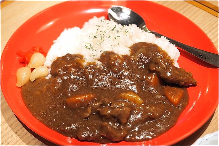 要吃飽的就點家常咖哩飯,香濃的咖哩醬配白飯就很好吃,有牛肉塊,紅蘿蔔跟馬鈴薯,另外附幾顆大蒜,要是阿弟爸有來,肯定一整盤清光。
