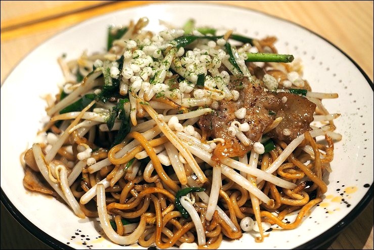 其實吃到這我的肚子已經快飽到頂了!!但同桌的男性友人胃很能裝,再來一盤日田地區醬汁炒麵(590日圓),這是九州日田的特色料理,炒麵加醬汁及大量豆芽是其特色,日本友人吃的很滿意,但口味算是比較重油重鹹一點,多人分食一人吃一些還OK。