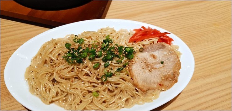 博多式炒拉麵福岡老牌泡麵風味(590日圓),這款是我第一次在日本吃到,有點類似重口味的台版麵線,它是福岡老牌泡麵的乾拉麵,叉燒跟紅薑是基本成員,再撒上芝麻跟青蔥,好吃。