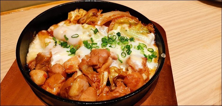 起司雞肉(990日圓),使用鐵板,上桌時熱騰騰又香濃的起司味,拍照時不斷吞口水...除了雞肉跟高麗菜,竟然也有年糕,跟起司根本就是絕配,如果再加點辣味,又是另一種美味啦。